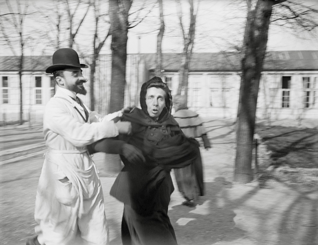 Dans une boîte, une série d’images intitulée «Les Folles» est retrouvée dans les archives du photographe Robert Demachy [1859-1936] conservées depuis 2004 au musée Nicéphore Niépce. Sur ces photographies, une cour cernée d’imposantes grilles, des femmes entravées par des camisoles. Vêtues de jupes noires, certaines sont assises sur des bancs ou couchées à même le sol, d’autres sont attachées à des fauteuils devant des portes fermées par des serrures en acier.